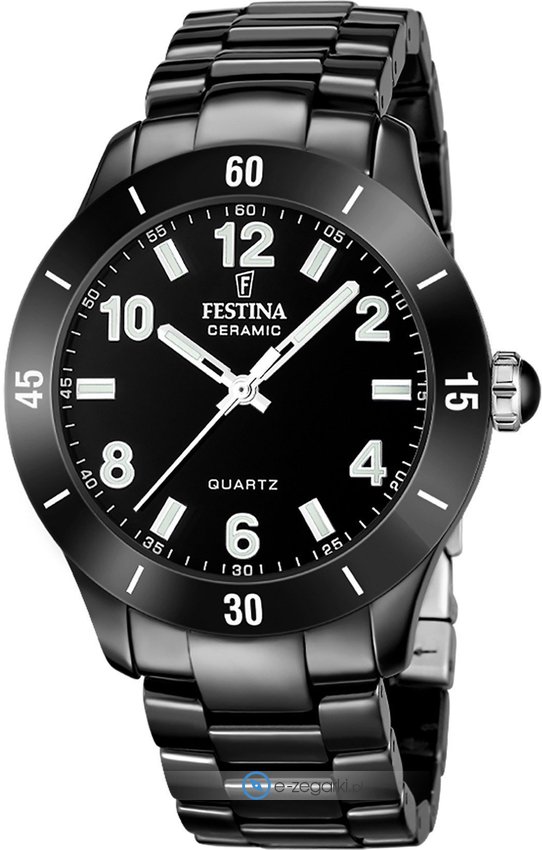 Zegarek F20723-1 marki Festina to gustowny zegarek naręczny damski, który wyposażono w pomysłowe rozwiązania oraz funkcje. Model ten pochodzi z kolekcji Festina Ceramic. Styl zapewnia wysokiej klasy tarcza w kolorze czarnym. Godzina zaprezentowana jest w sposób analogowy co niezmiernie łatwo pozwala ją odczytać. Koperta w barwach koloru czarnego szeroka jest na 38 mm - w kształcie okrągłym.