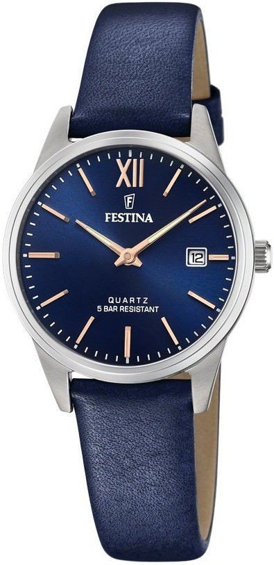 Model damski F20510-3 marki Festina z serii Festina Classic Bracelet. Charakteru nadaje wysokiej jakości cyferblat w kolorze granatowym. Zegarek ten pokazuje aktualny czas w formacie analogowym dzięki temu odczyt jest intuicyjny. Koperta jest pokryta kolorem srebrnym szeroka jest na 31 mm - w kształcie okrągłym.