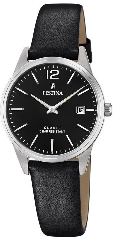 Zegarek damski F20510-8 marki Festina to ciekawa propozycja dla osób ceniących sobie dbałość o szczegóły oraz bezproblemowe funkcjonowanie mechanizmów. Niebanalny wygląd czasomierza uzyskano m.in. poprzez cyferblat w kolorze czarnym. Pokazana metodą analogową bieżąca godzina jest czytelna i prosta do sprawdzenia. Koperta jest w kolorze srebrnym szeroka jest na 31 mm - wyróżnia się okrągłym kształtem.