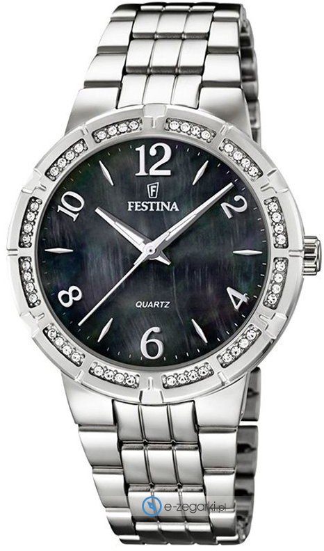 Model damski F16703-2 należy do rodziny Festina Mademoiselle marki Festina. Tarcza zegarka jest w kolorze czarnym. Zegarek ten pokazuje aktualny czas w formacie analogowym dzięki czemu odczyt jest bezproblemowy. Koperta jest w kolorze srebrnym szeroka jest na 35 mm oraz ma grubość 9 mm - wyróżnia się okrągłym kształtem.