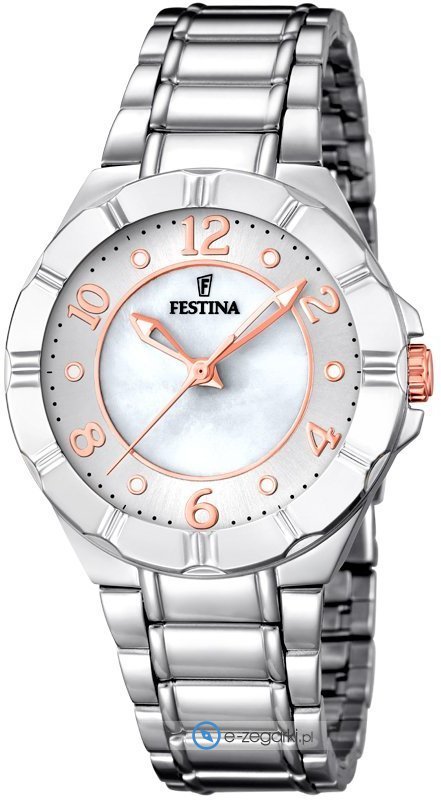 Festina tej marki z pewnością nie ma konieczności specjalnie prezentować. To znana i ceniona praktycznie na całym świecie marka zajmująca się produkcją zegarków, która narodziła się na początku XX wieku w Szwajcarii. Od momentu gdy marka trafiła do nowej grupy Festina Group w latach 80-tych ubiegłego stulecia stała się nizwykle popularna. Aktualnie zegarki Festina można dostać w przeszło 50 krajach na wszystkich kontynentach. Markę Festina bardzo często można dostrzec na różnego rodzaju imprezach sportowych, np wyścigach kolarskich Tour de France. Istotną cechą zgeraków Festina jest posiadanie specjalnie utwardzanego szkiełka mineralnego na które Festina udziela osobnej 5 letniej gwarancji. Obecnie twarzą marki jest słynny i szanowany aktor Gerard Butler, można go zauważyć w wielu spotach reklamowych właśnie z zegarkiem Festina.