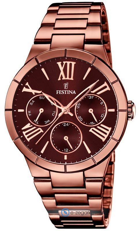 Festina tego brandu z pewnością nie ma potrzeby specjalnie przedstawiać. To znana i uznawana praktycznie na całym świecie marka zajmująca się produkcją zegarków, która narodziła się na początku XX wieku w szwajcarskiej miejscowości La Chaux-de-Fonds. Od czasu gdy marka weszła w skład nowej grupy Festina Group w latach osiemdziesiątych ubiegłego stulecia stała się bardzo zauważalna. Aktualnie zegarki Festina można nabyć w ponad 50 krajach na świecie. Markę Festina bardzo często można zobaczyć na różnego rodzaju imprezach sportowych, np wyścigach kolarskich Tour de France. Wyróżnikiem zgeraków Festina jest posiadanie specjalnego utwardzanego szkiełka mineralnego na które Festina udziela osobnej 5 letniej gwarancji. Obecnie twarzą marki jest popularny i ceniony aktor Gerard Butler, można go zobaczyć w wielu reklamach właśnie z czasomierzem Festina.