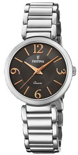 Festina tej marki zapewne nie trzeba specjalnie przedstawiać. To lubiana i ceniona praktycznie na całym świecie marka zajmująca się produkcją czasomierzy, która narodziła się początkiem XX wieku w szwajcarskiej miejscowości La Chaux-de-Fonds. Od momentu kiedy marka weszła w skład osobnej grupy Festina Group w latach 80-tych poprzedniego stulecia stała się nizwykle popularna. Aktualnie zegarki Festina można kupić w przeszło pięćdziesięciu krajach na świecie. Markę Festina bardzo często można zobaczyć na różnego rodzaju imprezach sportowych, np wyścigach kolarskich Tour de France. Istotną cechą zgeraków Festina jest posiadanie specjalnie utwardzanego szkiełka mineralnego na które marka udziela osobnej pięcio letniej gwarancji. Współcześnie twarzą marki jest popularny i szanowany aktor Gerard Butler, można go dostrzec w wielu spotach reklamowych właśnie z chronometrem Festina.