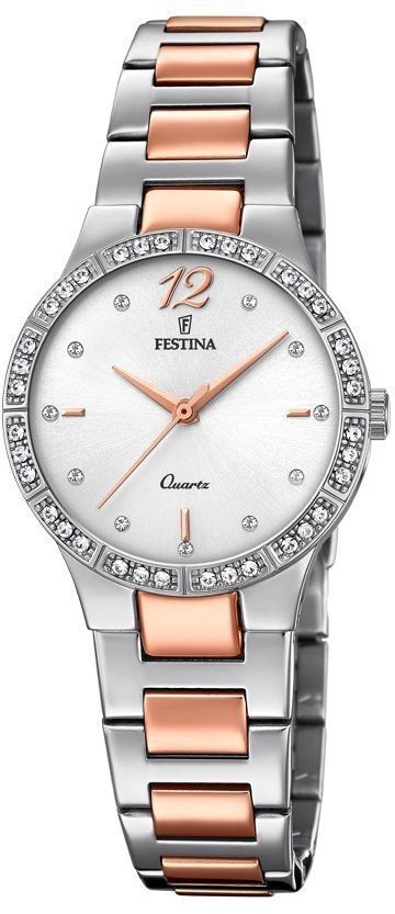 Festina tej marki chyba nie trzeba specjalnie przedstawiać. To znana i ceniona praktycznie na całym świecie marka zajmująca się produkcją zegarków, która narodziła się na początku XX wieku w Szwajcarii. Od momentu gdy marka trafiła do osobnej grupy Festina Group w latach osiemdziesiątych ubiegłego stulecia stała się bardzo zauważalna. W dzisiejszych czasach zegarki Festina można dostać w przeszło pięćdziesięciu krajach na wszystkich kontynentach. Markę Festina bardzo często można dostrzec na różnego przekroju imprezach sportowych, np wyścigach kolarskich Tour de Pologne. Istotną cechą zgeraków Festina jest posiadanie specjalnego utwardzanego szkiełka mineralnego na które marka udziela osobnej 5 letniej gwarancji. Współcześnie twarzą marki jest popularny i szanowany aktor Gerard Butler, można go ujrzeć w wielu reklamach właśnie z czasomierzem Festina.