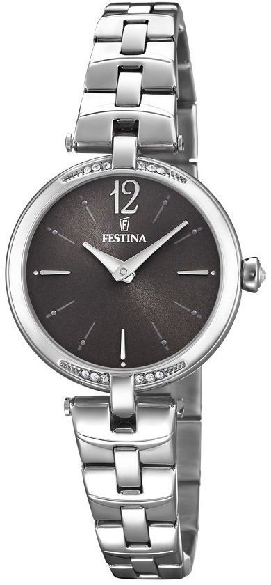 Zegarek F20307-2 marki Festina to elegancki zegarek naręczny damski, który jest wyposażony w pomysłowe rozwiązania oraz funkcje. Model ten występuje w serii Festina Mademoiselle. Styl zapewnia wysokiej klasy tarcza w kolorze czarnym. Zegarek ten prezentuje aktualny czas w formacie analogowym dzięki czemu odczyt jest bardzo łatwy. Koperta w barwach koloru srebrnego szeroka jest na 28 mm oraz ma grubość 8 mm - w kształcie okrągłym.