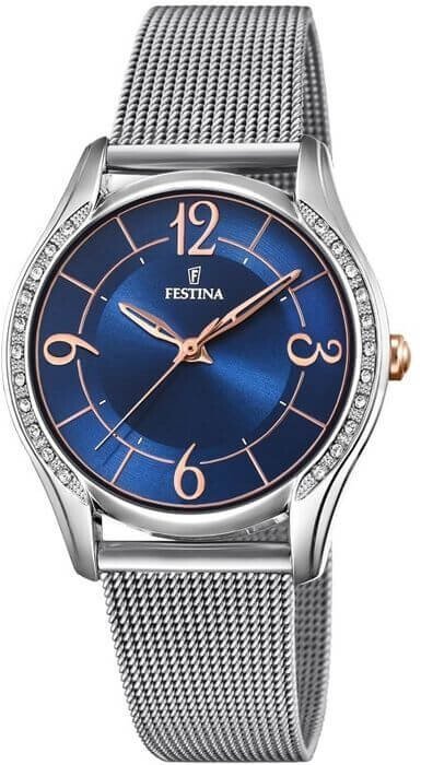 Festina F20420-4 - damski zegarek kierowany dla osób szukających zegarka z serii Festina Mademoiselle. Styl zapewnia wysokiej jakości tarcza w kolorze niebieskim. Zegarek ten prezentuje godzinę w formacie analogowym dzięki czemu odczyt jest intuicyjny. Koperta jest ozdobiona kolorem srebrnym szeroka jest na 36 mm oraz ma grubość 9 mm - posiada okrągły kształt.