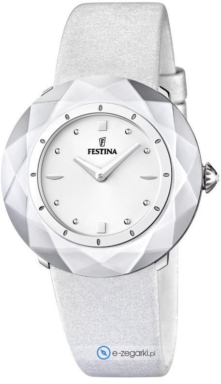 Festina F16620-1 - damski zegarek kierowany dla osób szukających zegarka z rodziny Festina Milano. Styl zapewnia wysokiej jakości cyferblat w kolorze białym. Zegarek ten pokazuje godzinę w formacie analogowym dzięki temu odczyt jest intuicyjny. Koperta w barwach koloru srebrnego szeroka jest na 37 mm oraz ma grubość 10 mm - cechuje się okrągłym kształtem.