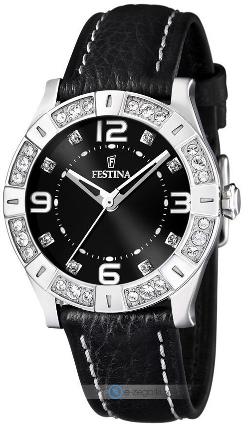 Zegarek damski F16537-2 marki Festina to stylowe połączenie funkcjonalności a także modnego wzornictwa. Model ten w gamie innych zegarków tego producenta występuje w serii Festina Only For Ladies. Wysokiej trwałości cyferblat zegarka pokryto czarnym kolorem. Zaprezentowana metodą analogową bieżąca godzina jest czytelna i prosta do sprawdzenia. Koperta została ozdobiona kolorem srebrnym szeroka jest na 38 mm oraz ma grubość 10 mm - ma okrągły kształt.