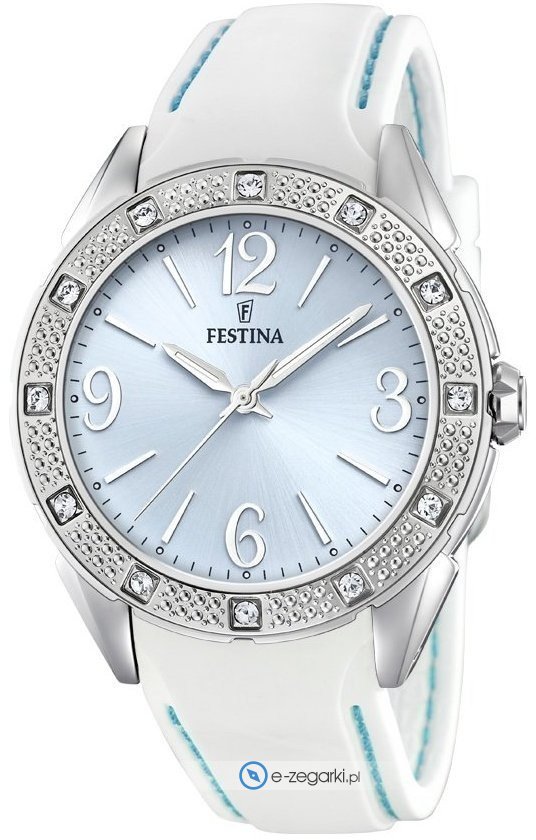 Model damski F20243-2 zalicza się do rodziny Festina Only For Ladies marki Festina. Charakterystyczny wygląd zegarka uzyskano również dzięki tarczy w kolorze niebieskim. Zegarek ten prezentuje godzinę w formacie analogowym dzięki czemu odczyt jest intuicyjny. Koperta jest ozdobiona kolorem srebrnym szeroka jest na 41 mm oraz ma grubość 11 mm - w kształcie okrągłym.