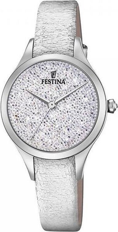 Festina F20409-1 - damski zegarek przeznaczony dla osób szukających zegarka z kolekcji Festina Swarovski. Ciekawy wygląd zegarka osiągnięto m.in. poprzez tarczę w kolorze srebrnym. Pokazana metodą analogową aktualna godzina jest czytelna i szybka do sprawdzenia. Koperta została pokryta kolorem srebrnym szeroka jest na 30 mm oraz ma grubość 8 mm - wyróżnia się okrągłym kształtem.