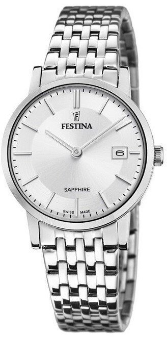 Damski zegarek F20019-1 z kolekcji Festina Swiss Made marki Festina to połączenie smaku oraz nowatorskich mechanizmów. Ciekawą budowę czasomierza osiągnięto dzięki tarczy w kolorze srebrnym. Zegarek ten pokazuje aktualny czas w formacie analogowym dzięki czemu odczyt jest intuicyjny. Koperta jest w kolorze srebrnym szeroka jest na 29 mm - wyróżnia się okrągłym kształtem.