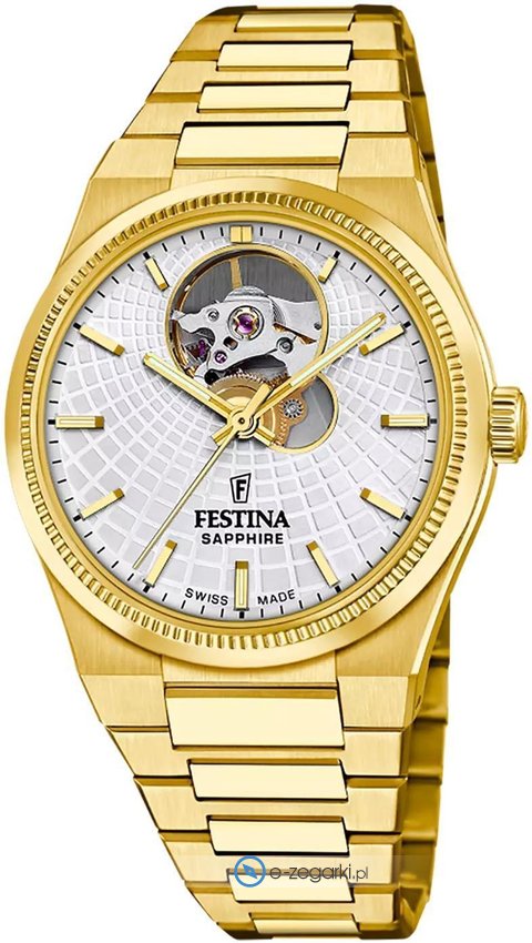 Festina to marka, której chyba nie ma konieczności specjalnie przedstawiać. To znana i uznawana praktycznie na całym świecie marka zajmująca się produkcją zegarków, która narodziła się na początku XX wieku w szwajcarskiej miejscowości La Chaux-de-Fonds. Od momentu kiedy marka weszła w skład osobnej grupy Festina Group w latach 80-tych poprzedniego stulecia stała się bardzo zauważalna. Aktualnie zegarki Festina można nabyć w przeszło 50 krajach na świecie. Markę Festina bardzo często można zobaczyć na różnego przekroju imprezach sportowych, np wyścigach kolarskich Tour de Pologne. Istotną cechą zgeraków Festina jest posiadanie specjalnie utwardzanego szkiełka mineralnego na które marka udziela osobnej pięcio letniej gwarancji. Współcześnie twarzą marki jest modny i ceniony aktor Gerard Butler, można go zobaczyć w wielu reklamach właśnie z chronometrem Festina.