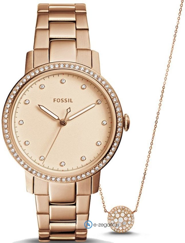 Model ES4330SET marki Fossil to elegancki zegarek naręczny damski, który posiada ciekawe rozwiązania oraz funkcje. Charakter zapewnia wysokiej klasy cyferblat w kolorze różowo złotym. Koperta szeroka jest na 35 mm oraz ma grubość 10 mm - w kształcie okrągłym.