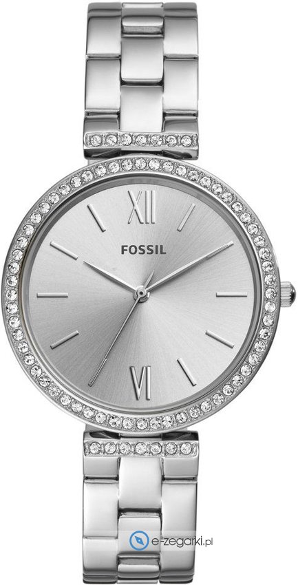 Zegarek damski ES4539 marki Fossil to dobre połączenie funkcjonalności a także ciekawego designu. Cyferblat zegarka w kolorze szarym. Koperta w odcieniach koloru stalowego szeroka jest na 38 mm oraz ma grubość 6 mm - w kształcie okrągłym.