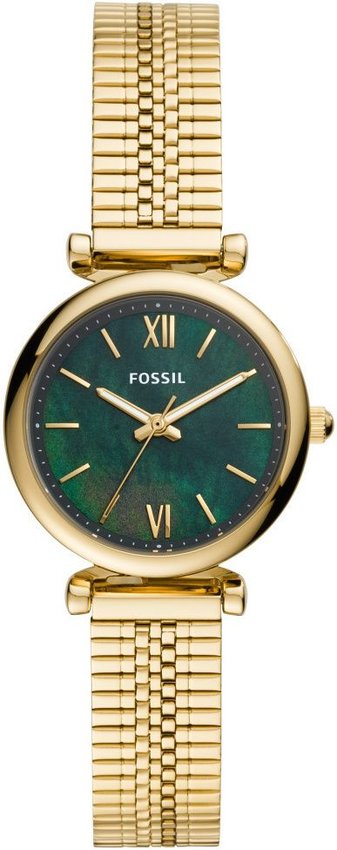 Damski zegarek Fossil ES4645 to zegarek, który dzięki swemu wzornictwu zawsze będzie prezentował się dobrze. Charakter zapewnia wysokiej klasy cyferblat w kolorze zielonym. Aktualna godzina zaprezentowana jest w sposób analogowy co intuicyjnie pozwala ją odczytać. Koperta jest w kolorze złotym szeroka jest na 28 mm oraz ma grubość 7 mm - cechuje się okrągłym kształtem.