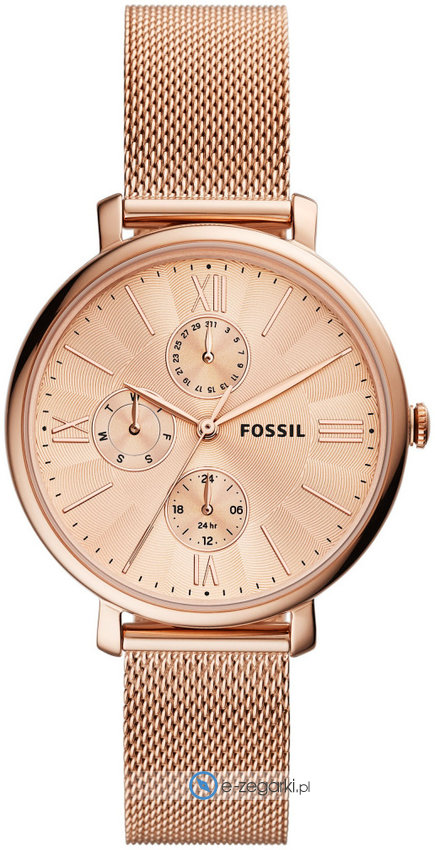 Zegarek damski ES5098 marki Fossil to dobra pozycja dla osób ceniących sobie dbałość o detale jak również sprawne funkcjonowanie mechanizmów. Stylu nadaje wysokiej klasy cyferblat w kolorze różowo złotym. Aktualna godzina przedstawiona jest w sposób analogowy co niezmiernie łatwo pozwala ją odczytać. Koperta szeroka jest na 38 mm - cechuje się okrągłym kształtem.