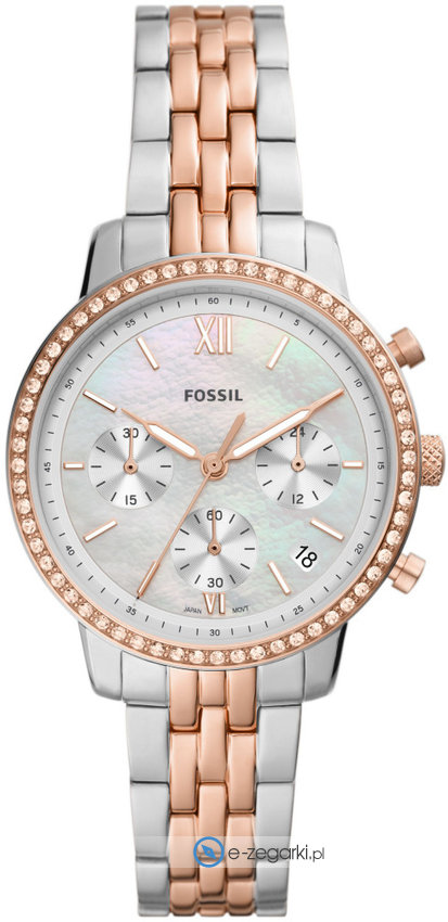 Model ES5279 marki Fossil to elegancki zegarek naręczny damski, który wyposażono w ciekawe rozwiązania i funkcje. Tarcza zegarka jest w kolorze białym. Zaprezentowana metodą analogową bieżąca godzina jest czytelna i prosta do sprawdzenia. Koperta w odcieniach koloru różowo złotego szeroka jest na 36 mm oraz ma grubość 11 mm - wyróżnia się okrągłym kształtem.