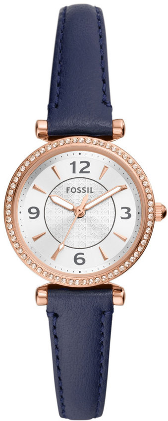 Zegarek damski ES5295 marki Fossil to dobra propozycja dla osób ceniących sobie dbałość o szczegóły jak również sprawne działanie mechanizmów. Niebanalny wygląd czasomierza uzyskano m.in. poprzez cyferblat w kolorze srebrnym. Aktualna godzina prezentowana jest w sposób analogowy co bez trudu pozwala ją odczytać. Koperta jest w kolorze różowo złotym szeroka jest na 28 mm - ma okrągły kształt.