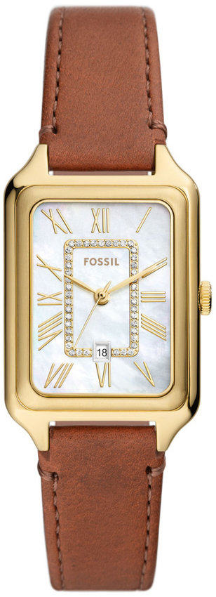 Zegarek damski ES5307 marki Fossil to idealna propozycja dla ludzi ceniących sobie dbałość o detale oraz bezawaryjne zachowanie mechanizmów. Wysokiej jakości tarczę zegarka ozdobiono białym kolorem. Aktualna godzina zaprezentowana jest w sposób analogowy co niezmiernie łatwo pozwala ją odczytać. Koperta jest w kolorze złotym szeroka jest na 26 mm oraz ma grubość 7 mm - ma prostokątny kształt.