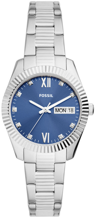 Zegarek damski ES5197 należy do kolekcji Fossil Scarlette marki Fossil. Nieschematyczny wygląd zegarka uzyskano m.in. poprzez cyferblat w kolorze niebieskim. Zaprezentowana metodą analogową bieżąca godzina jest czytelna i prosta do sprawdzenia. Koperta jest ozdobiona kolorem srebrnym szeroka jest na 32 mm oraz ma grubość 10 mm - charakteryzuje się okrągłym kształtem.