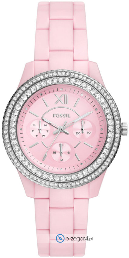 Damski zegarek ES5153 z kolekcji Fossil Stella marki Fossil to połączenie smaku oraz nieprzeciętnych funkcji. Charakterystyczny wygląd czasomierza osiągnięto m.in. poprzez tarczę w kolorze różowym. Zegarek ten prezentuje aktualny czas w formacie analogowym dzięki temu odczyt jest bardzo łatwy. Koperta jest w kolorze różowym szeroka jest na 37 mm oraz ma grubość 8 mm - posiada okrągły kształt.