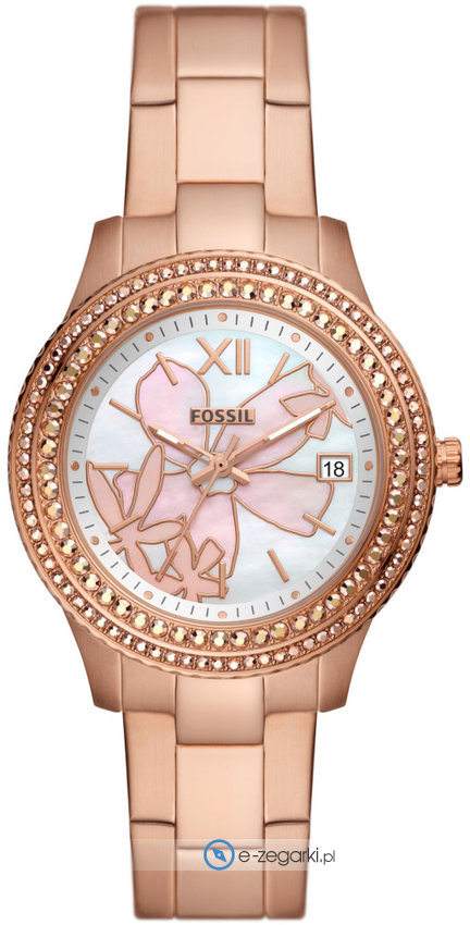 Fossil ES5192 to damski zegarek przeznaczony dla osób szukających zegarka z serii Fossil Stella. Charakterystyczny wygląd zegarka osiągnięto także dzięki tarczy w kolorze białym. Zegarek ten pokazuje aktualny czas w formacie analogowym dzięki czemu odczyt jest bezproblemowy. Koperta szeroka jest na 37 mm - w kształcie okrągłym.