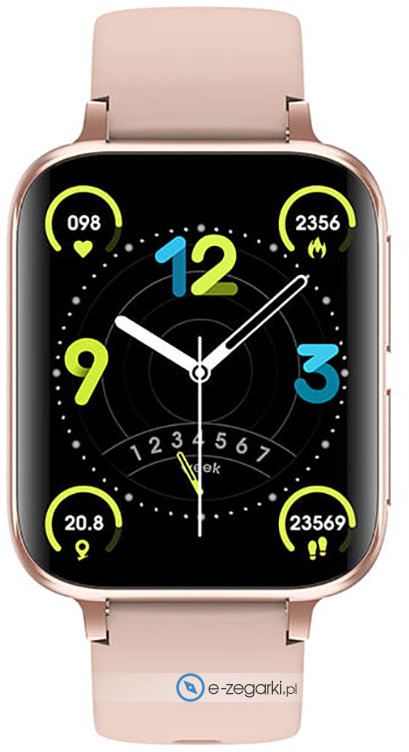Model 5904238480021 Smartwatch Garett BeFit Sport RT różowy marki Garett to elegancki zegarek naręczny damski, który posiada pomysłowe rozwiązania oraz funkcje. Zaprezentowana metodą cyfrową bieżąca godzina jest czytelna i szybka do odczytania. Koperta w barwach koloru różowo złotego szeroka jest na 37 mm oraz ma grubość 12 mm - w kształcie prostokątnym.