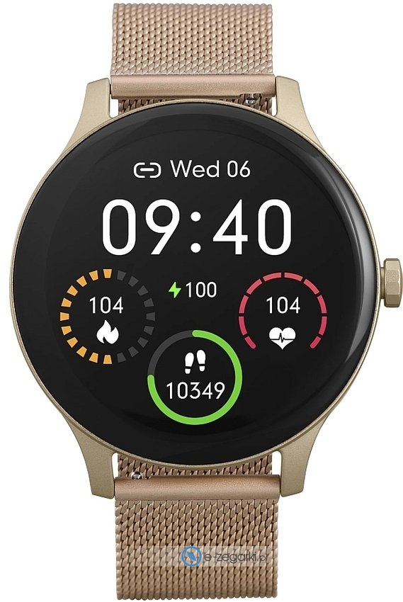 Smartwatch - wykorzystanie nowoczesnej technologii Smart powoduje, że model ten ma zdecydowanie więcej możliwości niż przeciętny zegarek, wszystko dzięki połączeniu ze smartphonem. Po zainstalowaniu aplikacji dostarczanej przez producenta w telefonie mamy do dyspozycji dodatkowe opcje zegarka. Został 5904238483770 Smartwatch Garett Classy złoty stalowy wyposażony w mechanizm zasilany akumulatorkiem, doładowywanym w razie konieczności.
