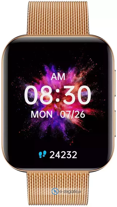 Model 5904238484784 Smartwatch Garett GRC MAXX złoty stalowy marki Garett to gustowny zegarek naręczny damski, który posiada pomysłowe rozwiązania oraz funkcje. Aktualna godzina pokazywana jest w sposób cyfrowy co bez trudu pozwala ją odczytać. Koperta jest w kolorze różowo złotym szeroka jest na 38 mm oraz ma grubość 11 mm - wyróżnia się prostokątnym kształtem.