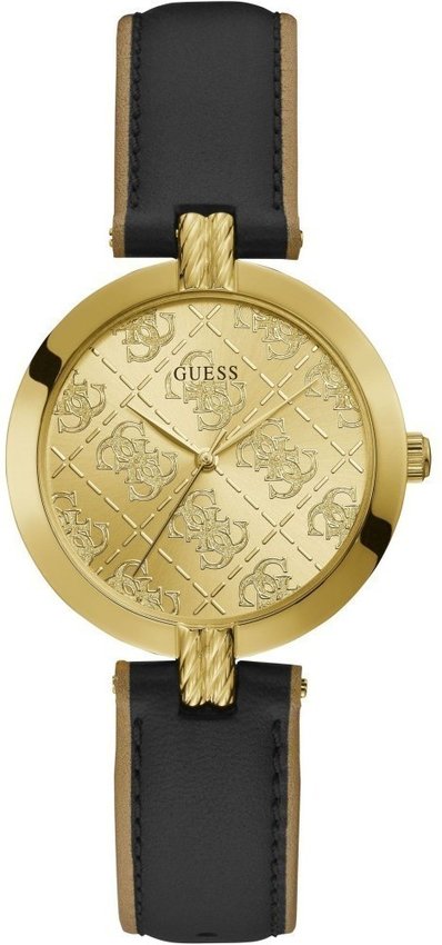 Zegarek damski GW0027L1 marki Guess to ciekawa pozycja dla osób ceniących sobie dbałość o szczegóły oraz bezproblemowe zachowanie mechanizmów. Niebanalny wygląd zegarka osiągnięto także dzięki tarczy w kolorze złotym. Pokazana metodą analogową bieżąca godzina jest czytelna i łatwa do odczytania. Koperta w odcieniach koloru złotego szeroka jest na 35 mm oraz ma grubość 9 mm - w kształcie okrągłym.