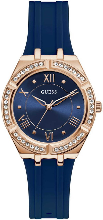 Damski zegarek Guess GW0034L4 to zegarek, który dzięki swemu wzornictwu zawsze będzie prezentował się dobrze. Nieschematyczny wygląd zegarka uzyskano także dzięki tarczy w kolorze niebieskim. Godzina pokazywana jest w sposób analogowy co intuicyjnie pozwala ją odczytać. Koperta szeroka jest na 36 mm oraz ma grubość 9.35 mm - w kształcie okrągłym.