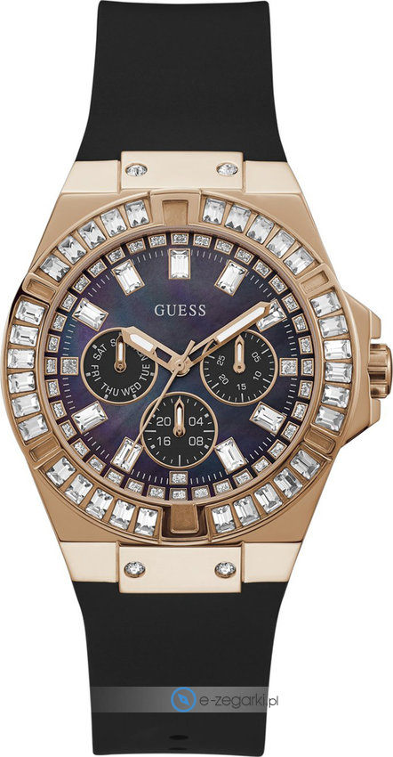 Guess czyli marka znana każdemu. Jest to światowy brand rozpoznawalny niemal w każdym zakątku świata. Czasomierze Guess to cząstka elegancji oraz luksusu na ręku właściciela, modele te dzięki niepowtarzalnym akcentom uwypuklają swój styl, cechują się także gustowną elegancją i funkcjonalnością na najwyższym poziomie. Zegarki Guess to pewność nieprzeciętnego stylu i wysokiej jakości wykonania, którą mogą poszczycić się tylko największe światowe marki. Model ten jest w niższej cenie z uwagi na prowadzoną akcję Outlet dla tych zegarków.