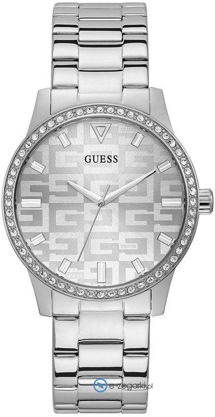 Zegarek damski GW0292L1 marki Guess to idealna propozycja dla osób ceniących sobie dbałość o szczegóły jak również bezawaryjne zachowanie mechanizmów. Stylu nadaje wysokiej klasy cyferblat w kolorze srebrnym. Pokazana metodą analogową aktualna godzina jest czytelna i prosta do odczytania. Koperta w barwach koloru srebrnego szeroka jest na 40 mm oraz ma grubość 10 mm - w kształcie okrągłym.