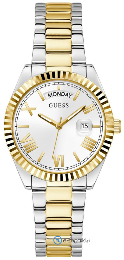 Damski zegarek Guess GW0308L6 to zegarek, który dzięki swemu wzornictwu zawsze będzie prezentował się dobrze. Charakter zapewnia wysokiej klasy cyferblat w kolorze białym. Godzina zaprezentowana jest w sposób analogowy co niezmiernie łatwo pozwala ją odczytać. Koperta w odcieniach koloru srebrnego szeroka jest na 36 mm oraz ma grubość 9 mm - wyróżnia się okrągłym kształtem.