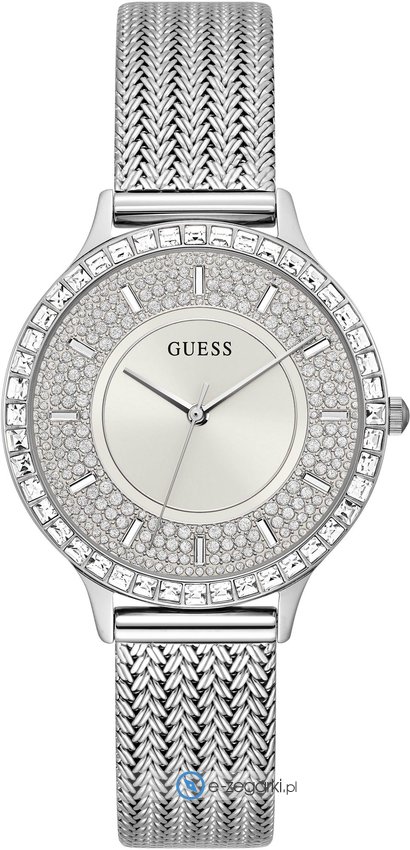 Damski zegarek Guess GW0402L1 to zegarek, który dzięki swemu wzornictwu zawsze będzie prezentował się dobrze. Niebanalny wygląd zegarka osiągnięto także dzięki tarczy w kolorze srebrnym. Zegarek ten prezentuje godzinę w formacie analogowym dzięki czemu odczyt jest bezproblemowy. Koperta w odcieniach koloru srebrnego szeroka jest na 38 mm oraz ma grubość 9 mm - w kształcie okrągłym.