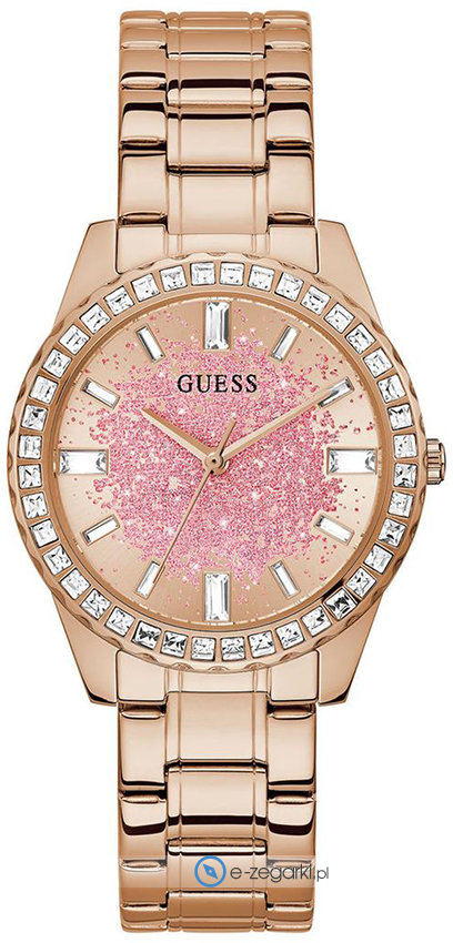 Model GW0405L3 marki Guess to stylowy zegarek naręczny damski, który jest wyposażony w pomysłowe rozwiązania oraz funkcje. Stylu nadaje wysokiej jakości tarcza w kolorze różowym. Zegarek ten prezentuje aktualny czas w formacie analogowym dzięki temu odczyt jest bardzo łatwy. Koperta szeroka jest na 38 mm - posiada okrągły kształt.