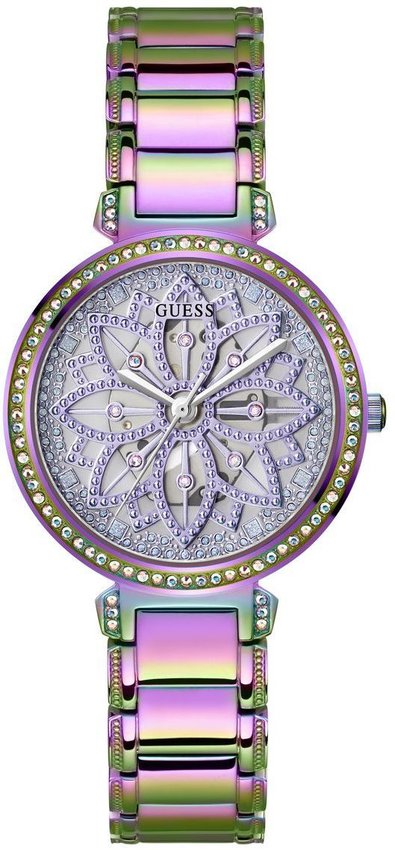 Zegarek damski GW0528L4 marki Guess to ciekawa pozycja dla osób ceniących sobie dbałość o detale jak również bezproblemowe działanie mechanizmów. Cyferblat zegarka jest w kolorze srebrnym. Pokazana metodą analogową bieżąca godzina jest czytelna i prosta do odczytania. Koperta w barwach koloru fioletowego szeroka jest na 36 mm.