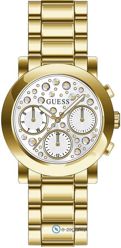 Zegarek damski GW0559L2 marki Guess to idealna propozycja dla ludzi ceniących sobie dbałość o szczegóły oraz sprawne funkcjonowanie mechanizmów. Styl zapewnia wysokiej klasy tarcza w kolorze srebrnym. Pokazana metodą analogową aktualna godzina jest czytelna i szybka do sprawdzenia. Koperta w barwach koloru złotego szeroka jest na 38 mm - w kształcie okrągłym.