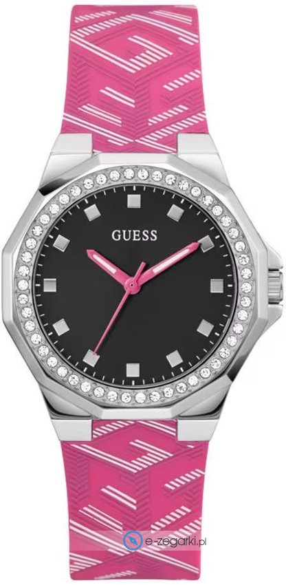 Damski zegarek Guess GW0598L1 to propozycja dla kobiet ceniących sobie amerykańską innowacyjność i modny design. Zegarki Guess to synonim luksusu i elegancji, a ten model idealnie wpisuje się w ten wizerunek. Czarna tarcza kontrastuje z różowym paskiem, tworząc wyrazisty i stylowy dodatek. Prezentowana metodą analogową bieżąca godzina jest czytelna i łatwa do sprawdzenia. Koperta o szerokości 38 mm ma klasyczne proporcje, idealne na damski nadgarstek.