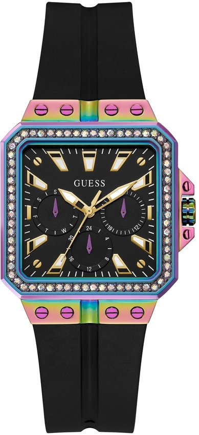 Zegarek damski GW0618L3 marki Guess to stylowe połączenie funkcjonalności i ciekawego designu. Charakter zapewnia wysokiej klasy tarcza w kolorze czarnym. Aktualna godzina przedstawiona jest w sposób analogowy co intuicyjnie pozwala ją odczytać. Koperta szeroka jest na 34 mm.