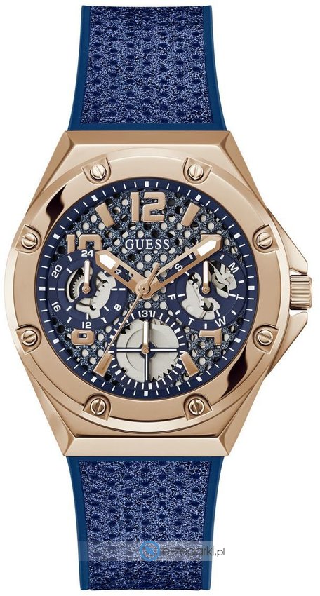 Zegarek damski GW0620L3 marki Guess to idealna propozycja dla ludzi ceniących sobie dbałość o detale oraz bezproblemowe działanie mechanizmów. Wysokiej trwałości cyferblat zegarka pokryto niebieskim kolorem. Pokazana metodą analogową aktualna godzina jest czytelna i prosta do sprawdzenia. Koperta w barwach koloru różowo złotego szeroka jest na 40 mm oraz ma grubość 10 mm - charakteryzuje się okrągłym kształtem.