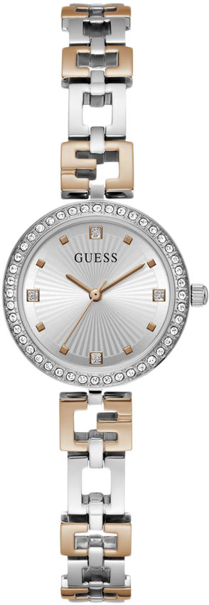 Damski zegarek Guess GW0656L2 to zegarek, który dzięki swemu wzornictwu zawsze będzie prezentował się dobrze. Charakter zapewnia wysokiej jakości tarcza w kolorze srebrnym. Aktualna godzina przedstawiona jest w sposób analogowy co bez trudu pozwala ją odczytać. Koperta jest pokryta kolorem srebrnym szeroka jest na 26 mm oraz ma grubość 7 mm - wyróżnia się okrągłym kształtem.