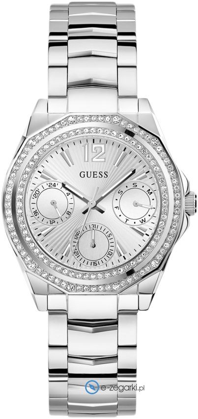 Zegarek damski GW0685L1 marki Guess to idealne połączenie funkcjonalności oraz ciekawego wzornictwa. Stylu dodaje wysokiej jakości cyferblat w kolorze srebrnym. Zegarek ten prezentuje godzinę w formacie analogowym dzięki czemu odczyt jest bezproblemowy. Koperta w barwach koloru srebrnego szeroka jest na 36 mm - cechuje się okrągłym kształtem.