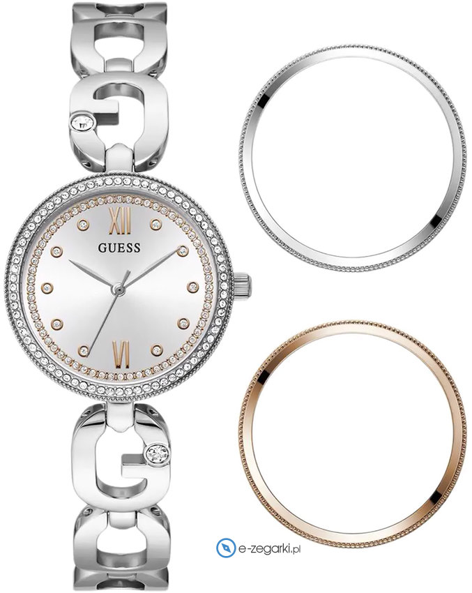 Model GW0693L1 marki Guess to elegancki zegarek naręczny damski, który jest wyposażony w ciekawe rozwiązania oraz funkcje. Styl zapewnia wysokiej jakości tarcza w kolorze srebrnym. Pokazana metodą analogową aktualna godzina jest czytelna i prosta do odczytania. Koperta jest pokryta kolorem srebrnym szeroka jest na 30 mm - w kształcie okrągłym.