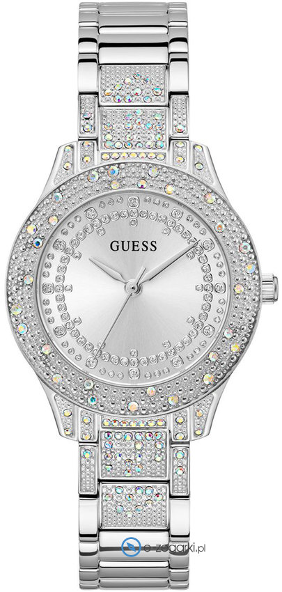 Zegarek damski GW0746L1 marki Guess to idealne połączenie funkcjonalności oraz modnego designu. Wysokiej jakości cyferblat zegarka pokryto srebrnym kolorem. Zegarek ten pokazuje aktualny czas w formacie analogowym dzięki temu odczyt jest intuicyjny. Koperta w barwach koloru srebrnego szeroka jest na 36 mm oraz ma grubość 10 mm - w kształcie okrągłym.