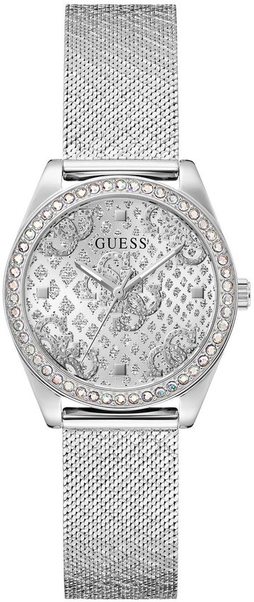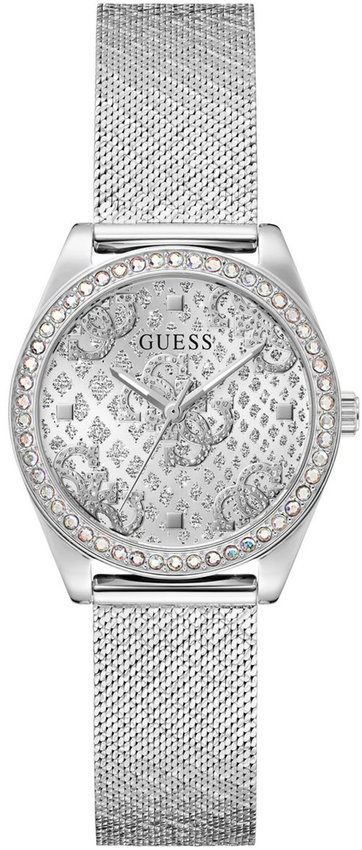 Model GW0748L1 marki Guess to gustowny zegarek naręczny damski, który wyposażono w pomysłowe rozwiązania oraz funkcje. Wysokiej jakości tarczę zegarka pokryto srebrnym kolorem. Koperta jest pokryta kolorem srebrnym szeroka jest na 32 mm - posiada okrągły kształt.