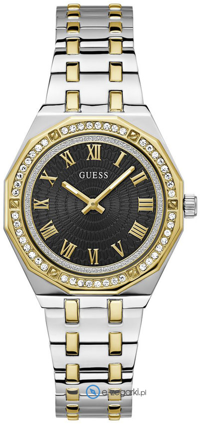 Zegarek damski GW0770L4 marki Guess to ciekawa pozycja dla ludzi ceniących sobie dbałość o szczegóły jak również sprawne działanie mechanizmów. Charakterystyczny wygląd zegarka uzyskano m.in. poprzez cyferblat w kolorze czarnym. Zaprezentowana metodą analogową bieżąca godzina jest czytelna i prosta do odczytania. Koperta w barwach koloru srebrnego szeroka jest na 35 mm oraz ma grubość 9 mm.