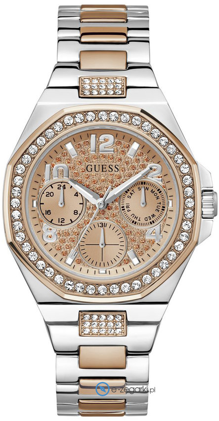 Zegarek damski GW0777L3 marki Guess to dobre połączenie funkcjonalności a także ciekawego designu. Niestereotypowy wygląd zegarka uzyskano również dzięki tarczy w kolorze różowo złotym. Aktualna godzina pokazywana jest w sposób analogowy co bez trudu pozwala ją odczytać. Koperta w barwach koloru różowo złotego szeroka jest na 40 mm - charakteryzuje się okrągłym kształtem.