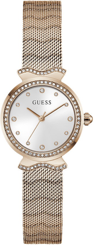 Zegarek damski GW0866L3 marki Guess to idealne połączenie funkcjonalności a także modnego wzornictwa. Ciekawą stylistykę zegarka uzyskano dzięki tarczy w kolorze białym. Pokazana metodą analogową bieżąca godzina jest czytelna i prosta do sprawdzenia. Koperta w odcieniach koloru różowo złotego szeroka jest na 28 mm oraz ma grubość 8 mm - wyróżnia się okrągłym kształtem.