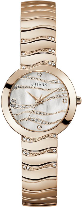 Zegarek damski GW0871L3 marki Guess to stylowe połączenie funkcjonalności a także modnego designu. Niestereotypowy wygląd zegarka uzyskano m.in. poprzez tarczę w kolorze beżowym. Zegarek ten pokazuje aktualny czas w formacie analogowym dzięki czemu odczyt jest bezproblemowy. Koperta jest w kolorze różowo złotym szeroka jest na 30 mm oraz ma grubość 8 mm - w kształcie okrągłym.